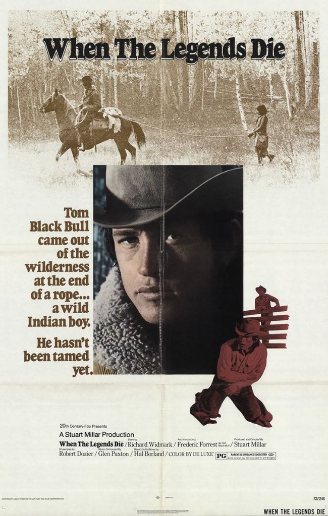 In 1966 Borland sold the film and television rights to When the Legend Die to Hollywood producer Stuart Millar and Embassy Pictures for $30,000. Millar was determined to direct the film himself and offered Borland a screenwriting position, which he turned down. Over the next five years, Millar declined several opportunities to produce the film with established directors. His persistence paid off in 1971 when 20th Century Fox agreed to finance the film with Millar producing and directing. Veteran screen actor Richard Widmark was cast in a leading role as the character Red Dillon. Widmark traveled from his home in Roxbury, CT to Borland’s farm in Salisbury, where they spent an August afternoon discussing the book. Filming was done in September and October 1971 in Durango, Colorado, and the Ute Reservation in Ignacio, the exact site Borland wrote about in the novel. The adult Thomas Black Bull was played by newcomer Frederick Forrest in his first starring role. For the role of Bear’s Brother, Millar cast a young Ute Indian boy named Tilman Box. In early December, Millar sent Borland a group of stills and Borland was completely taken by Tilman Box. Hal immediately wrote to the young actor: “I almost called you Bear’s Brother, because I just saw the picture of you in the Southern Ute Drum. In those two pictures, the ones with the bear, you clearly are the boy I was writing about. . . .I can’t think of a better choice for that role than you are. . . .you have already. . . .made my boy come true. Thank you.”