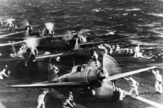 “March came and passed. Then in April came the word. On April 18, 1942, Lieutenant Colonel James H. Doolittle led a flight of sixteen B-25 bombers off the deck of the aircraft carrier Hornet and flew almost 700 miles to bomb Tokyo, Nagoya and Kobe. Mission accomplished and the planes beyond the point of no return, they flew on into China. It was a spectacular, historic feat, the first time bombers had flown from a carrier. Doolittle was credited with planning it and carrying it out successfully.